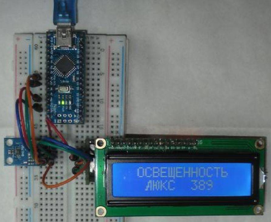 Вывод данных с одного датчика освещенности на жидкокристаллический индикатор