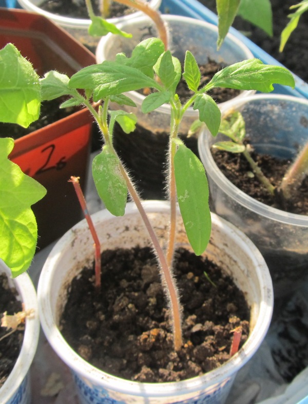 Помидорки для улицы и огромные, которые бы надо высадить, и еще совсем маленькие- вот такие, как розовая брикадель