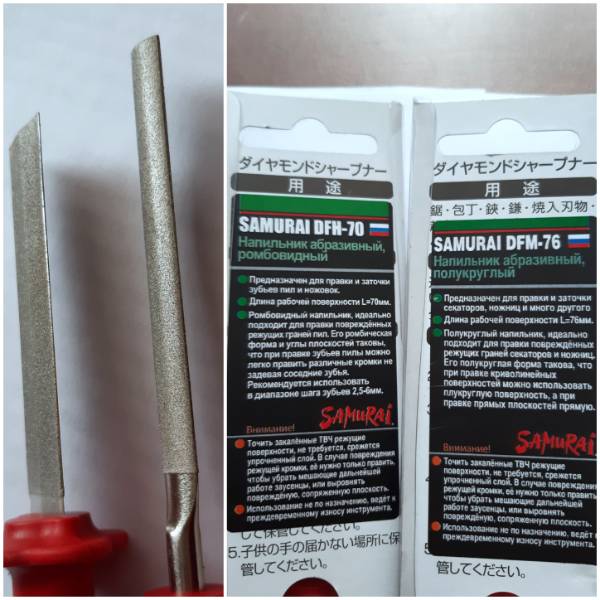 я секатор точу как раз плоским Самураем, круглого у меня нет.  Я совсем не спец в заточке инструмента, но секатор становится заметно острее.