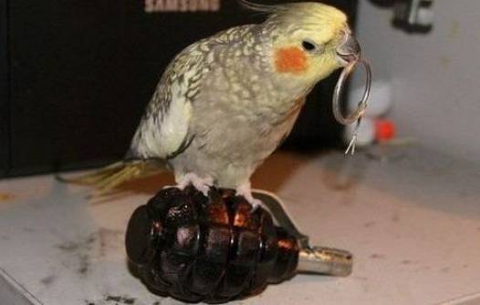 У него игрушка висит,он с ней ласкается,колокольчик теребунькает и  прости господи,палочку(жердочку)   имеет):lol: Я уж и ругать перестала его..надо ж мальчишке стресс как то снимать))