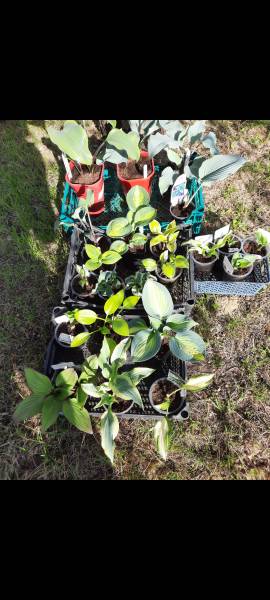 Мои хосточки. В красных горшках (2 литра) розница Франсен. Пока общий вид.