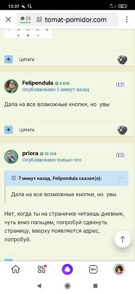 Нет, когда ты на страничке читаешь дневник, чуть вниз пальцем, попробуй сдвинуть страницу, вверху появляется адрес, попробуй.