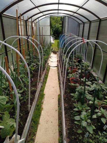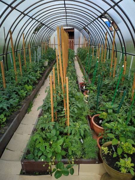 У меня в теплицах сейчас общежитие, стоят горшки с перцами и детами, вдоль бортиков зеленушка, куст клубнички, рассада цветочков, запасных огурцов и кабачков