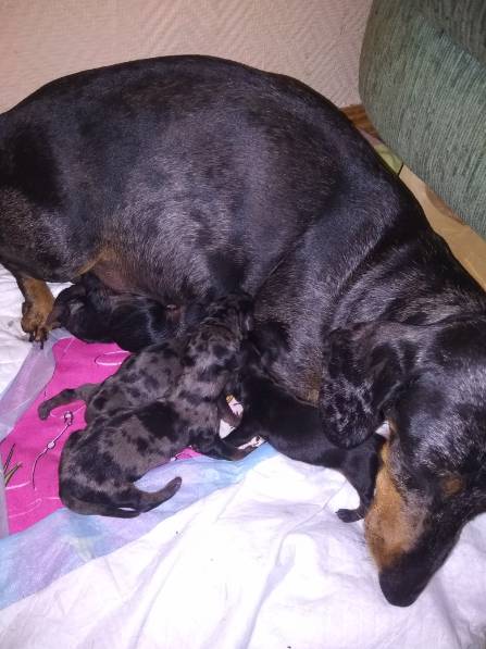 Доброе утро всем, всем!А я всю ночь и вечер накануне акушеркой была.Моя любимка ощенилась!Повязала в последний раз, хочу себе оставить одну.Моя старородящая,так тяжко ей было,я уже милльон раз пожалела,что пошла на это.Да,хотела в три ночи поздороваться,не стала в ночи строчить.В шесть побежали в ветеринарку,три часа перерыв был после первого щенка.В первый раз двух девочек нам подарила,а сейчас три парня и одна девочка.Но ,вроде ещё не вечер,жду продолжения.А так в первую вязку себе хотела оставить,но пришлось отдать.Она умница у меня в полгода крота первого поймала.Пока писала ещё один родился:09fp:IMG_20210608_091515.thumb.jpg.96f1926424e955bd9793186e98948eb6.jpg