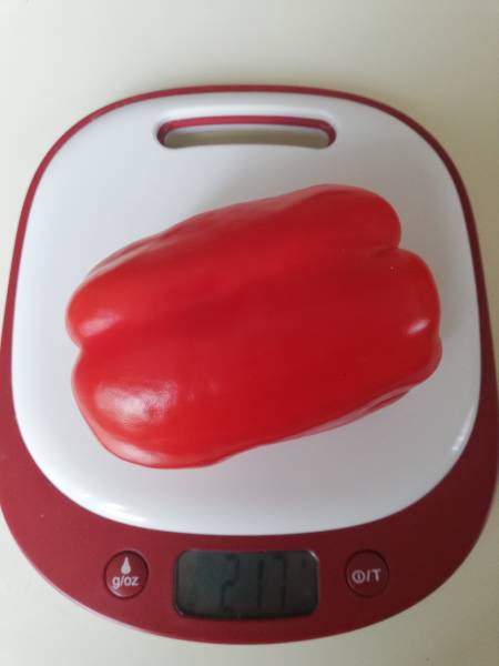 Еще пришли весы. Меня очень сильно напрягло, что мои весы в самый нужный момент отключаются. Но, с другой стороны, предъявлять претензии к весам, которые перешагнули 20-летний рубеж просто неприлично. Поэтому я заказала новые. А старые отвезу на дачу. Пусть там гаснут. В Для взвешивания томатов это не критично. Новые весы просто покорили своими формами :cheesy: Кстати, они совсем небольшие и не такие ядреные, как на фото. Цвет у них ближе к натуральной красно-оранжевой помидорине. На оборотной стороне весов есть кнопка переключения г-кг-фунты. А еще мл для воды и мл для молока. Интересненько.