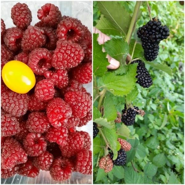 Ох и знатная малина, прямо русский размер! А справа что, ежевика?