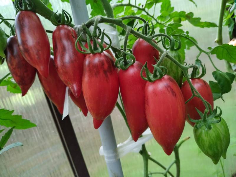 Самые большие плоды-60-70 грамм. Но в кисти есть и помельче, типа коктейльных-30-40 грамм. Вкуууусная :03niam:, сладенькая, типа Полосатой молнии - если кто растил.