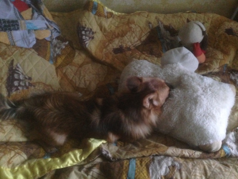 Повеселею вас. У нашего Мориарти любимая игрушка- подушка овца. Он Ее раздирает и всю набивку оттуда выбрасывает. Таскает Ее везде ща собой. Периодически я ее зашиваю. Вчера забрала зашить, весь изнервничался.