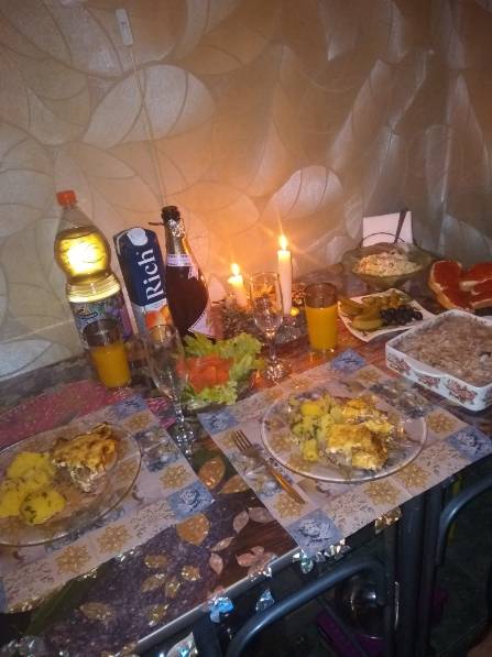 Вот не очень удачно у меня сложился последний день уходящего года,но ничего,зато отдохну немного,это меня так боженька тормознул,а ведь до этого, накануне уже грохнулась на улице,но без последствий,не учла урок, полезла шторы вешать и повесила же,но слезла не удачно,в результате перелом двух ребер и правая нога в гипсе,колено гуляет во все стороны:09fp:Но езжу по квартире на кресле и командую, люблю это дело:cheesy:Стол накрыла ,как смогла,не замарачивалась особо,мы с детёнышем вдвоем встретили,он помогал,как мог.IMG_20211231_234234.thumb.jpg.4e0798a87e861febe2855ce030e99038.jpg