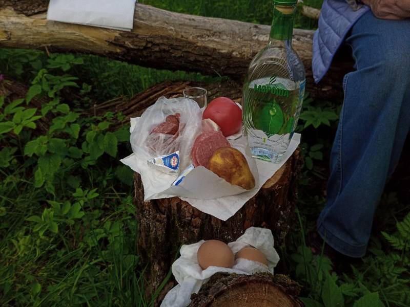 Тот же пенёк, то же деревце, закусь, только бутылка поменялась) Это в один день?