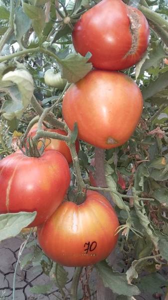 По высоте в теплице не был слишком высоким - 1м 70 примерно. Выдал 6 помидорин по 600-700 гр и несколько помельче.