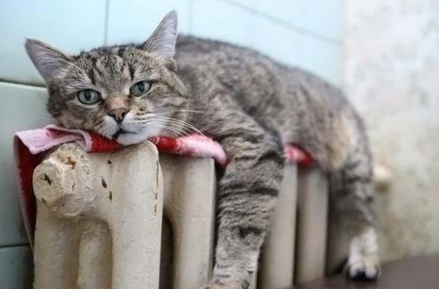 Батарею лапами обняла, глаза зажмурила - ах, я на Пхукете))