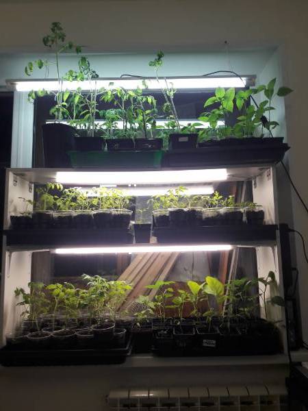 С июля, не торопи)). Раньше по две лампы на полку было. В этом году по одной. Но! Я рано ее выставляю в теплицы