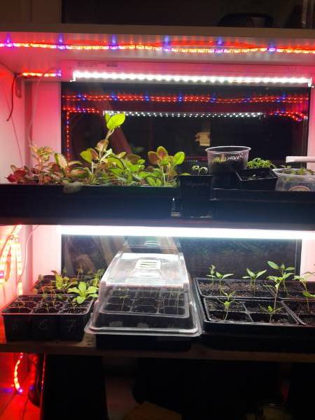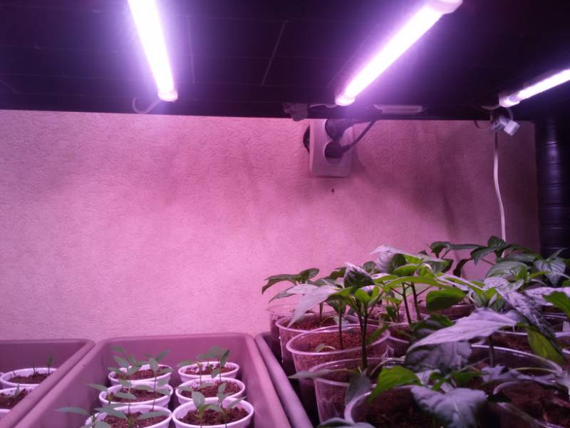 Светильники  сын сам паял, вроде как для растений . Свет чуть розоватый, синих ламп точно  нет.
