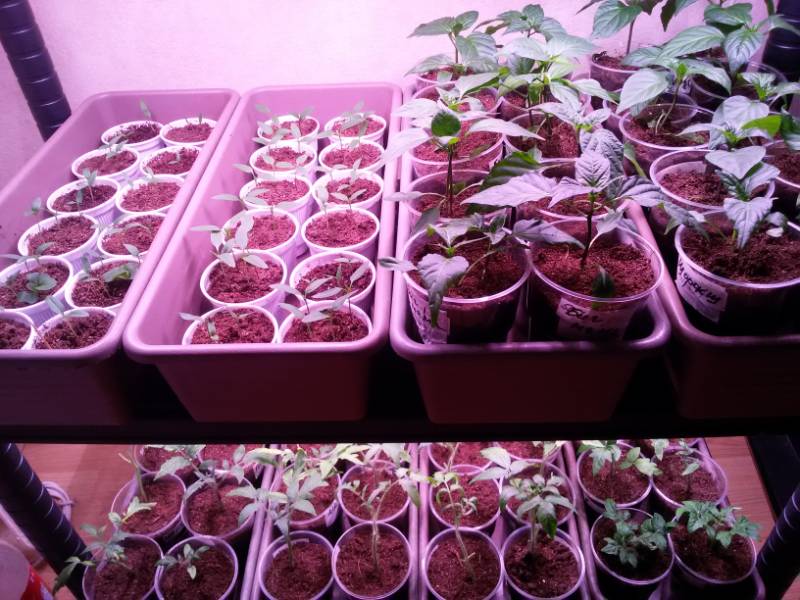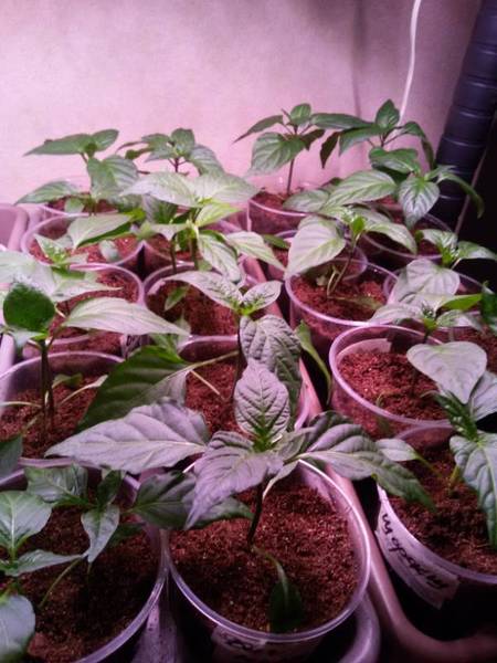 Перцы сею сразу в 100 гр стаканчики, свечу 2 недели по 14 часов красно-синими, а потом перевалка в поллитровые стаканы и на балкон со слабенькой подсветкой, но иногда включающимся солнышком, перцам больше 1 литра земли не даю. Правильно что увезли в прохладу, они сейчас немного тормознутся и прекрасно до высадки достоят. Поливать строго с утра, полив на ночь усиливает рост.