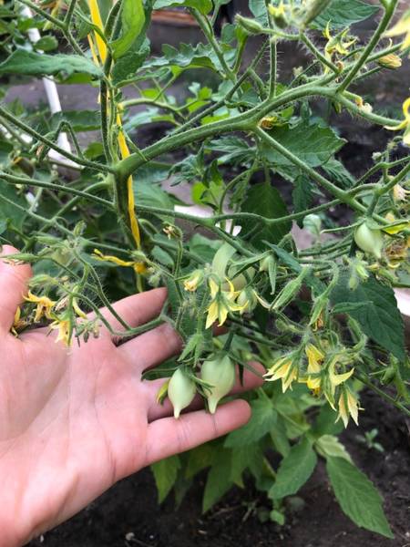 Я у себя обнаружила неопознанный объект) может кто подскажет, кто это может быть? Кистевой томатик, на фото только чертвертая часть одной кисти, сначала подумала, что смахивает на Юбилейный Тарасенко, но оказался мельче, вытянутее и носик больше.