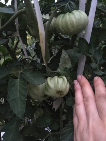 Перед поливом сняла вторые созревшие помидорины с кустов Бабы Нади, Яблочного Люкко и JR-17. Они стали явно вкуснее. Больше всего по вкусу из этих трёх понравилась - Баба Надя, на втором месте - JR-17, на третьем - Яблочный Люкко. Собрала семена.