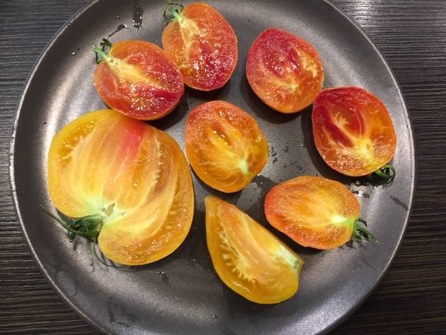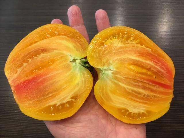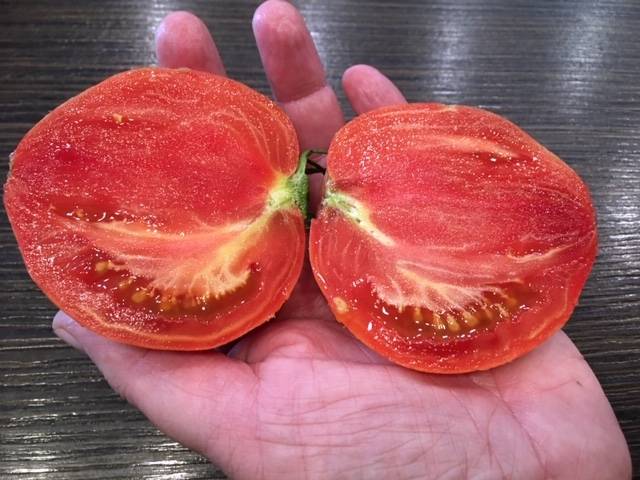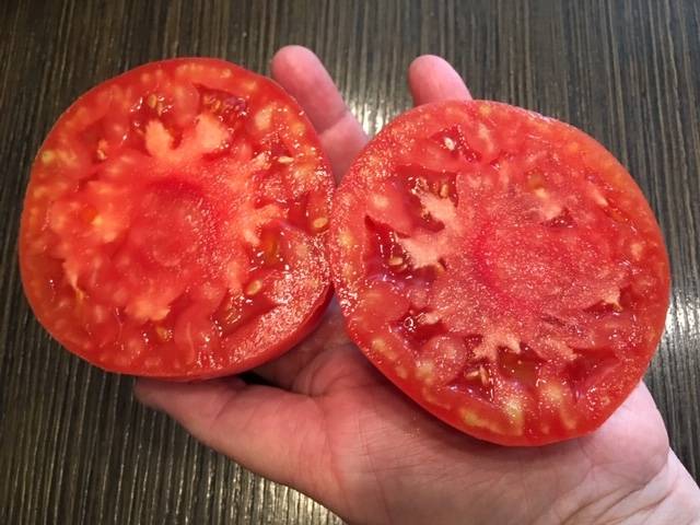 С утра дегустировала. У меня на вкус; очень сочный, не потрескался, маслянистый, приятно- освежающий, но не сладкий. Семена оставляю. Надо сказать, что когда не было дачи, покупая у частников помидоры( а унас не дешево) ни чего подобного я ни разу не купила, я была бы счастлива съесть такой помидор.