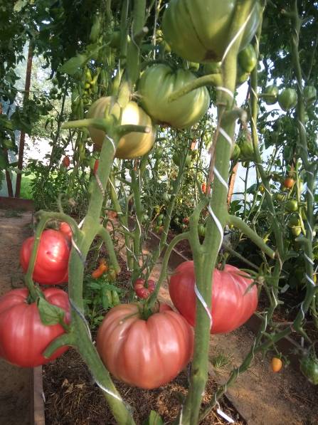 Сколько помню, она выращивала один сорт, пробовала другие, но всегда возвращалась к своему. Куст см 70, крепкий, широкий, лист простой темно-зеленый. Помидорки 150-300(сдвоенные) цвет рыже-красный. Сажала на рассаду 15-20 марта, в июне помидорки уже срывали на еду. И почему-то они казались необыкновенно вкусными ( как и многая еда из детства), на изломе с крупинками, но сочные, кисло-сладкие. Она их и мариновала и в ведре квасила. Были года , когда бабушка говорила- помидоры нынче мелкие уродились. А были года, когда с улыбкой сетовала- ну надо же какие крупные, в банку не лезут.