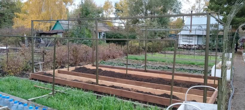 Всю неделю моросил дождь, а сегодня в час дня закончился снег и в 2 часа мы уже были на даче. Первым делом подтопили печку, сняли шланги и упаковали их на зиму, а потом у нас было 2 часа и мы с Веруней успели собрать грядки в новую теплицу. Мало того еще и прогноз изменился и можно будет завтра еще съездить, потому что дождь начнется вечером. Я на радостях банницу завернула, утром в духовку пихну и с собой горяченькую возьмем. Так что если повезет, то завтра грядки выставим по уровню и обобьем изнутри линолеумом, чтобы доски быстро от земли не гнили. Останется только трубы со стеклоарматурой внутри на крышу кинуть, ну это уже будет на следующих выходных.