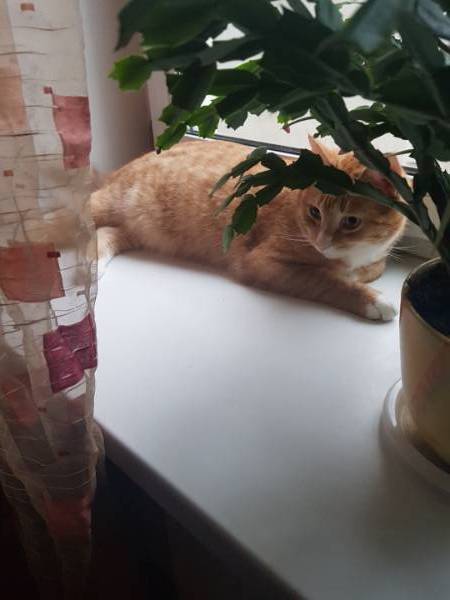 Это в квартире. Я побоялась взять его за город. Убежит. Он  - Лева, уже  второй раз остается у меня. Все хорошо, вел себя хорошо, всегда был там,где я, если за компом, он на диване,если на кухне, то на окне кухни, где и сфотографирован, если лежу на диване и читаю в телефоне, может прыгнуть через мою голову, но не заденет. Вообще, кошки и коты любят меня, а я их, какой-то космос.