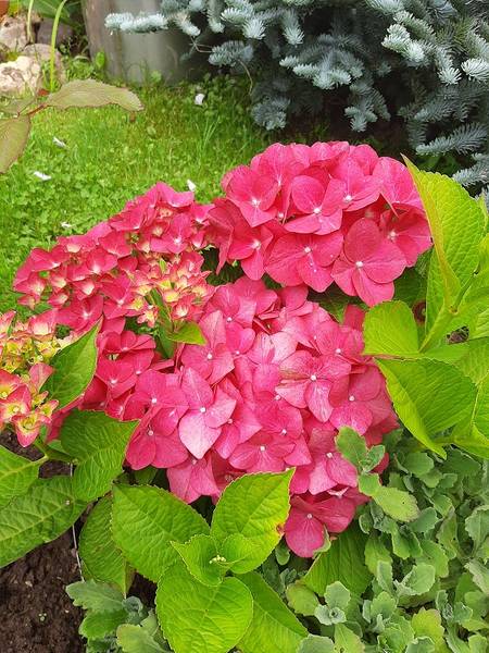 В этом году гортензии (макрофилы) или цветут намного позже, или вообще не цветут. Очень тёплая зима, затем несколько недель в марте-апреле ок. +15°+18°. И вдруг одна ночь -5°!!! Большенство сортов в этом году «взяли паузу» и растят полностью новые побеги. Что не есть плохо. Другие нашли в себе силы и резервы начать цветение сначала.