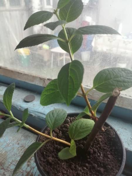 Да, получилось укоренить почти 80 процентов черенков. Эта была поздняя майская и июньская обрезка. Гортензии уже были с листочками.