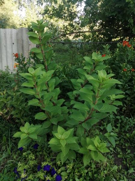 Эта была поздняя майская и июньская обрезка. Гортензии уже были с листочками.