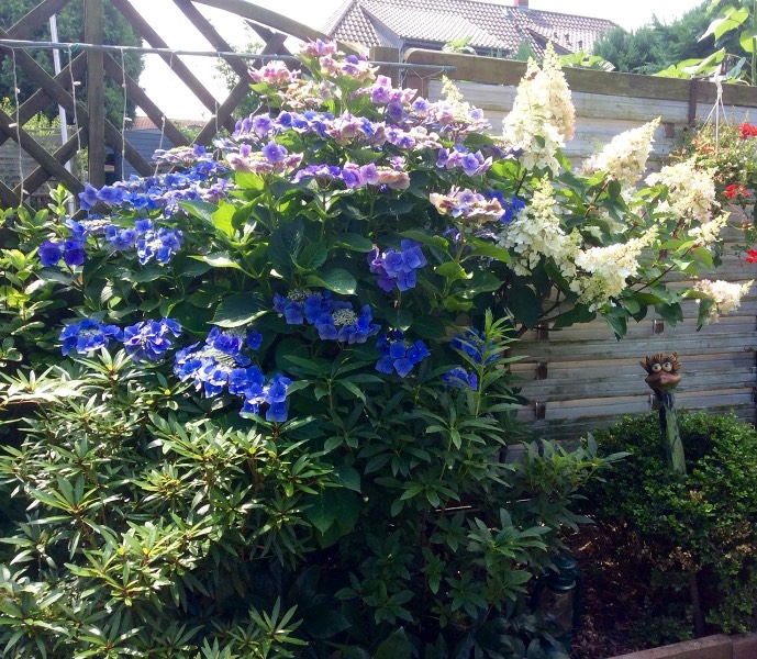 Все гортензии "плакали" в ответ на наши действия. Затем возможно, это отразилось на цветении. Четыре гортензии вообще не цвели.. Из-за этого так было или из-за того, что они у нас в тени..Сказать сложно.