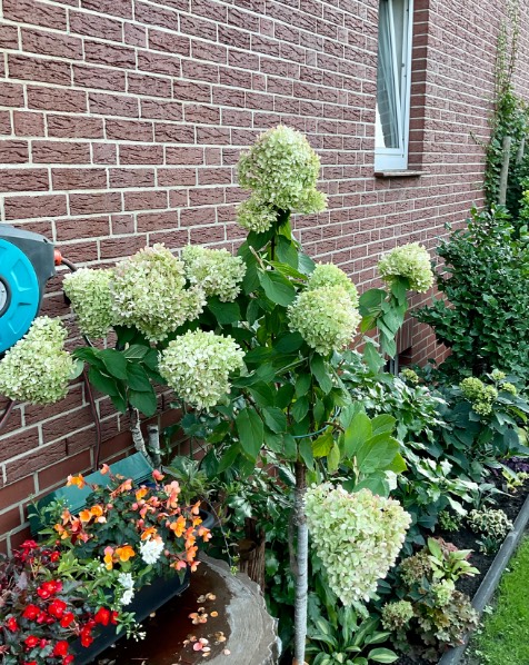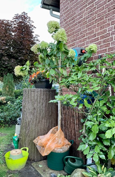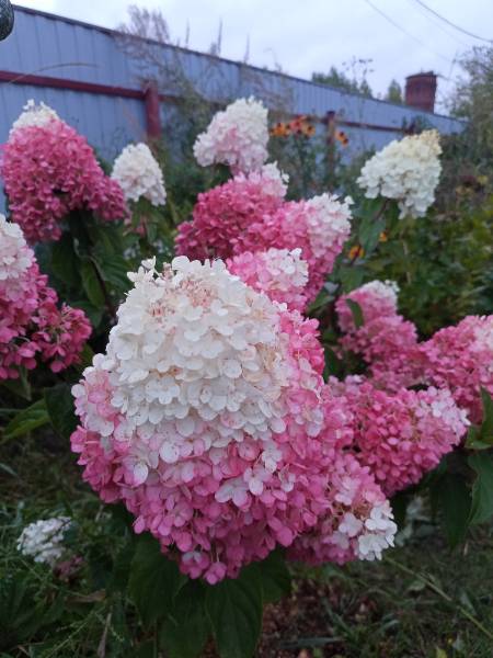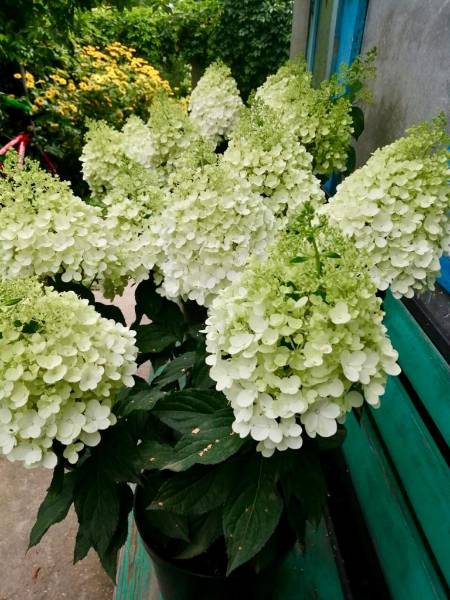 На фотографиях почему-то выглядит меньше, чем она есть. Сейчас с земляным комом общий рост ок. 2,30м! Мой немаленький муж (1,90м) рядом с гортензией выглядит почти гномом :mosking: