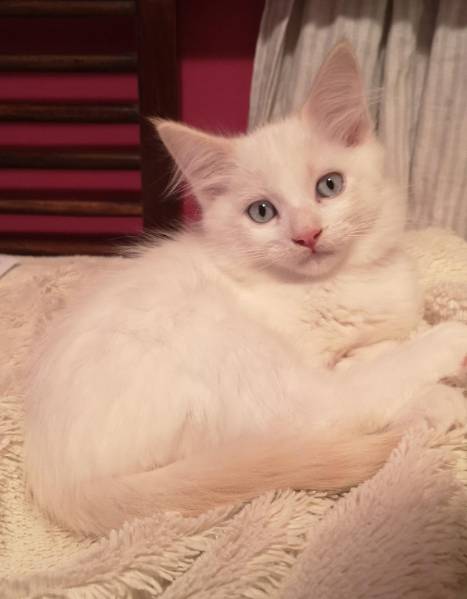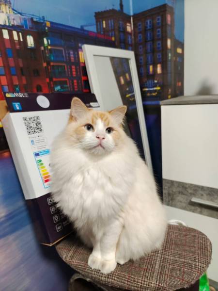 В субботу семейство дружно поехало их навестить, а по возвращению домой загрустили. Полночи искали в интернете котёнка , а рано утро созвонились с заводчицей, только что выставившей котят. В середине дня они уже были счастливыми обладателями. Конечно рановато забрали. Белых котов в нашей семье ещё не было. Он регдолл, но сомневаюсь, что голубых кровей, глазки на 1 балл, светло-голубые. А они по шкале от 1 до 6 ( темно- синие). Теперь все счастливы. А я с нетерпением жду встречи с обеими красавчиками.