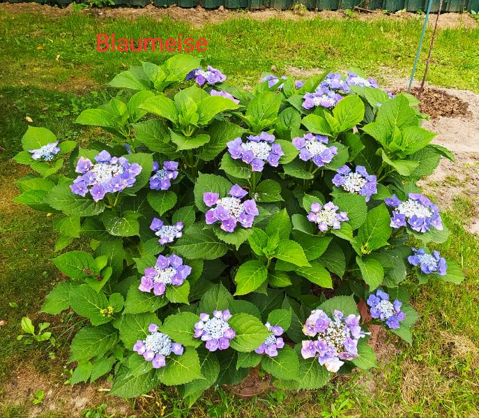 Вот для примера, гортензия Blaumeise. К сожалению, телефон не передаёт цвет. В реале он синий-синий. Сидит в горшке 25-30л с отрезанным дном. Горшок вкопан в землю. Периодически поливается лимонной кислотой. Кормится  Буйским удобрением для гортензий. На зиму укрывается двойным лутрасилом плюс полиэтиленовой пленкой. Возраст 3 года (т.е. перезимовал три зимы).