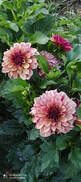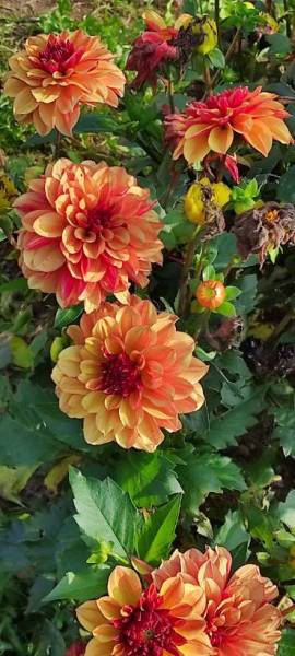 и георгины Myrtle's Folly, Sir Alfred Ramsey,Wizard of Oz,