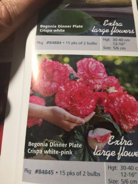 Девочки, на бегонии бахромчатые диннер плейт ссылок нет, это новинки. Уникальные, очень крупный цветок. Ссылку дам на обычные бахромчатые. Если найду, переделаю. Фотка из каталога, чтобы понимали размер