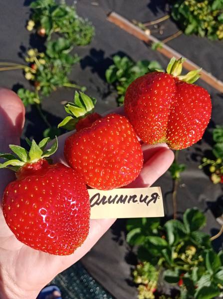 Сорт Олимпия для меня стал открытием года.  Просмотрела таблицу. Обидно, что ящик с Олимпией не набирается.  Сорт Олимпия достаточно новый. Чем же он меня удивил? Своим неповторимым вкусом, а сортов у нас больше 70.  Вкус очень сбалансированный- сахар и кислинка подобраны суперски и очень гармонично.  А ещё послевкусие каких-то фруктов. Описать вкус этой ягоды для меня очень сложно. Скажу просто- очень вкусный сорт. Специально никакие подкормки для сахаристости мы не делаем.