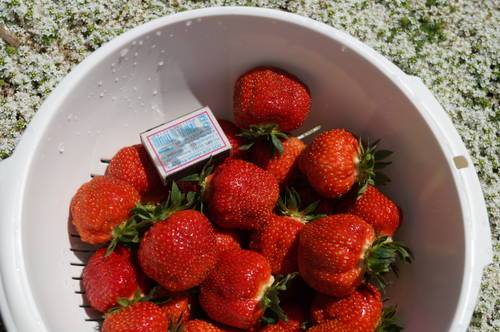 Ягода: правильной конической формы с чашечной средних размеров; Размер ягоды большой и постоянный. Цвет ягоды ярко-красный, очень привлекательный, остаётся таким же не темнея даже при полном дозревании. Мякоть красного однородного цвета, хорошей плотности, хорошо переносит манипуляции. Вкус превосходный с хорошим содержанием сахара. Размер ягод и структура растения значительно упрощают сбор урожая, позволяя ощутимые сокращение расходов