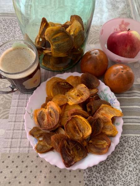 Из 4 кг хурмы, получилось 770г сушеной. Она не чипсы, а как бы вяленая, кусается хорошо.