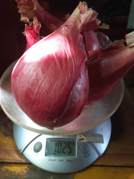 Доброе утро! Хотя не совсем. На термометре в 6 утра ноль, а пошла сейчас кочан капусты срезать, кругом иней. Три покровных листа капусты насквозь промерзли, дальше уже поменьше. Хорошо, что редьку выдернули и свеклу спанбондом накрыли.   Лук красный длинный от Гавриша. В этом году  сажала семена из простых белых пакетов. До этого года три из цветных. Такой крупный вырос только в этом году. Думаю из-за того, что поливало нас с мая до первых дней августа. А так у меня же огород без полива. Поэтому и обрадовалась Наташиному предложению посадить лук в ящик. Туда надо только одну Лейку воды.