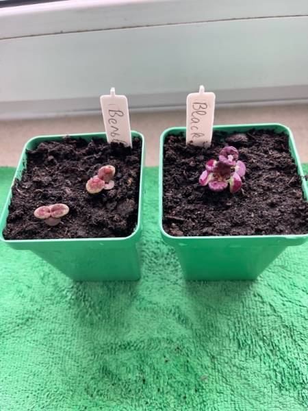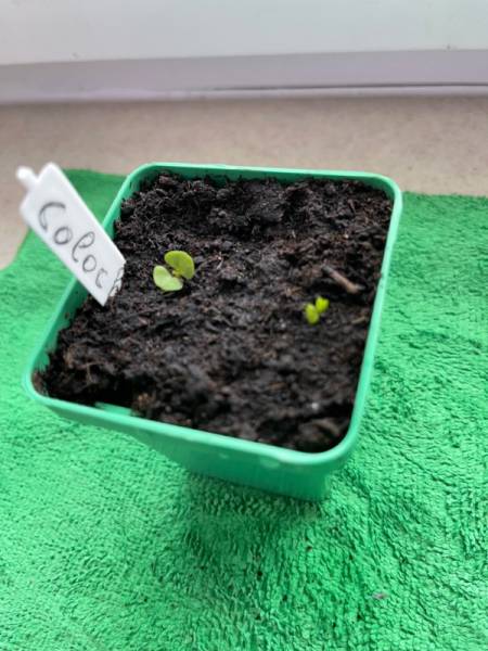 Сеяла по 4-5 штук семена гелиотропов Марина и Одиссей. Сорт Марина взошёл в количестве 1 штука, а Одиссей в количестве 4 штуки, но только две всхода пока смогли снять шлемы, у двух шлемы снять не получается :embarrassed: