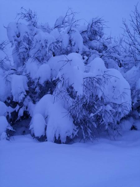 Доброе утро!!! А у нас снег валит не останавливаясь. Город коллапсирует. Деревья валятся на проезжую часть, не выдерживая снеговой нагрузки. Стихия, однако...