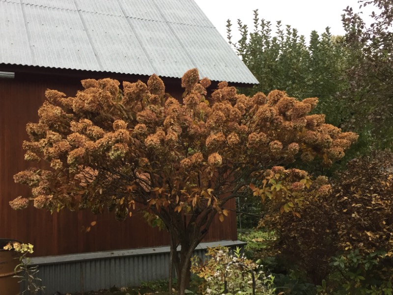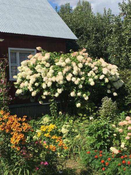 Людмила, гортензии этой 20 лет. Обрезку провожу каждый год весной на две или одну почку(покороче). На днях мужа попросила обрезать. Не знаю, что он там наваял без меня, посмотрим...