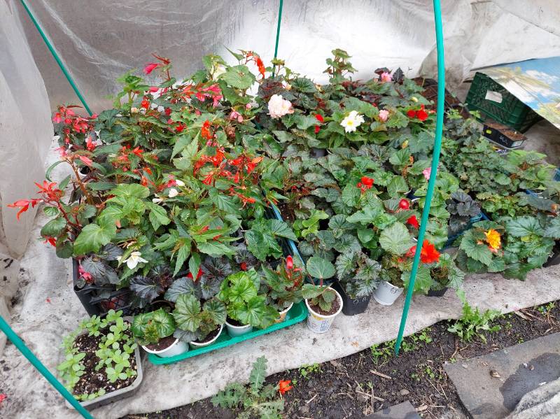Бегонии и бальзамины в парнике активно цветут. Помидорчики пошли потихоньку в рост после пикировки. Вот переживем холода на этой неделе и перчики тоже  вынесу в парник.