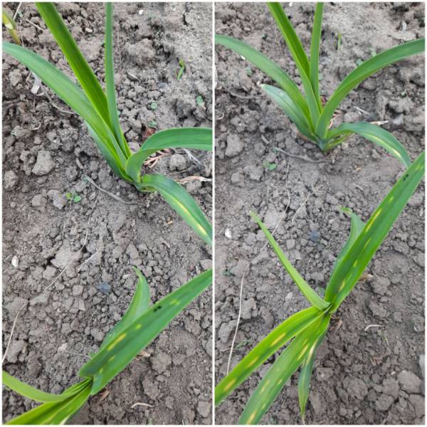 Впервые в жизни взошел весь чеснок, 100%. Обычно прилично не всходит, может и четверть выпасть. Вот что значит много снега было.