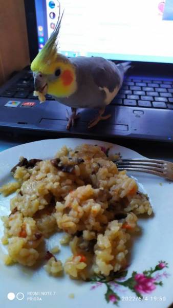 А наш карела Филипуша такой вредный стал, прямо как дитё командует, то хлеба дайте, то зерна поменяйте, да и зелень завяла. С у тра до 10 утра бодрствует, потом надо накрыть, он спать будет. Просыпается в 17 час. И до 20 час. С криками.