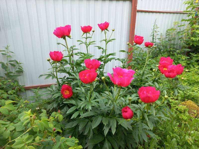 Название пиона не помню. Давно сажала. А с шиповника, конечно, слбираю плоды.