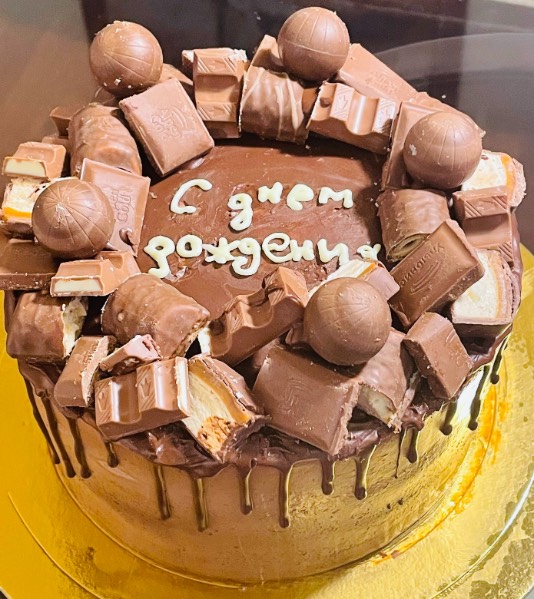 :kiss:Ну а я тоже поучаствую в традиции дневничка - оставлять все самое вредное самое вкусное на ночь. Дочь испекла тортик :embarrassed:. Расстроилась, что напортачила с надписью, впервые ее делала.