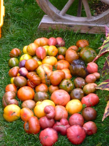 Красотища! Георгины просто отпадные! А помидорный натюрморт вызывает чувство просто щенячьего восторга! А что будешь с ними делать? Сок, ачучук, соус?