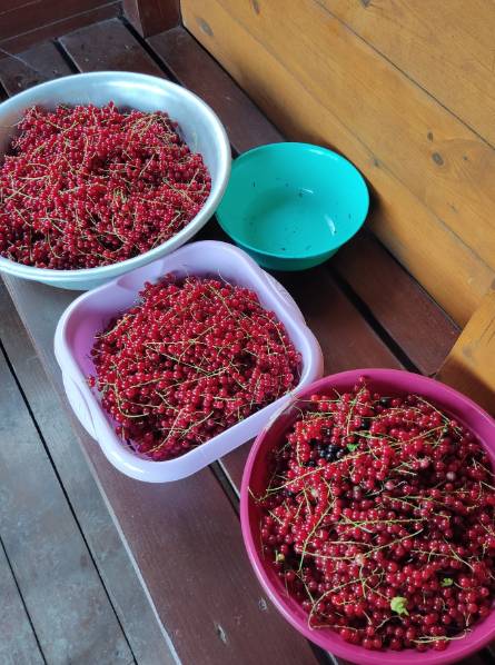 Тихо как, все спят! И только у меня работает маленький консервный заводик!:cheesy:То ягоды, то огурцы, то другие ягоды, то опять огурцы, и так по кругу:09fp:Помидоров пока нет спелых, все зеленые. Вот сейчас например, у меня поспела красная смородина. И значит я опять буду делать желе.