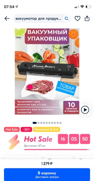 Девочки, по наводке Лены, сходила на распродажу Озон. Там вакууматор есть со скидкой. Про качество не знаю, но на попробовать можно взять ?