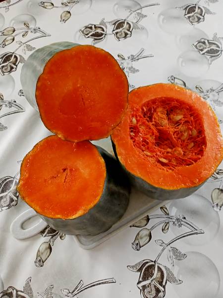 И овощей своих, с грядочки, а пока достала из морозилку и разрезала тыкву